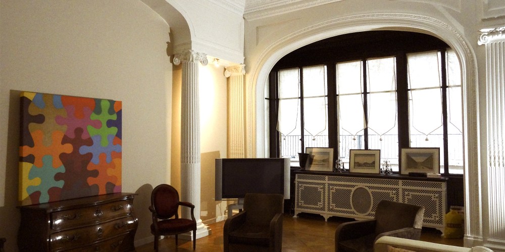 Exemple : Réalisation en lin naturel qui a apporté modernité, chaleur et confort phonique (Paris XVI ème) :